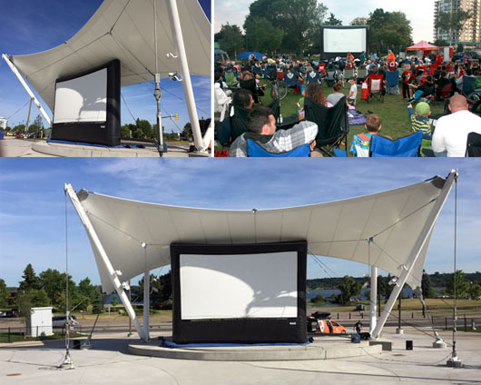 The Barrie Film Festival also does bookings which includes our technical crew that set up/tear down and operate film nights outdoors. For a quote and to discuss site considerations email us through our Contact form. All films shown must have copyright licensing rights obtained before showing publicly, which we can help you with as well.